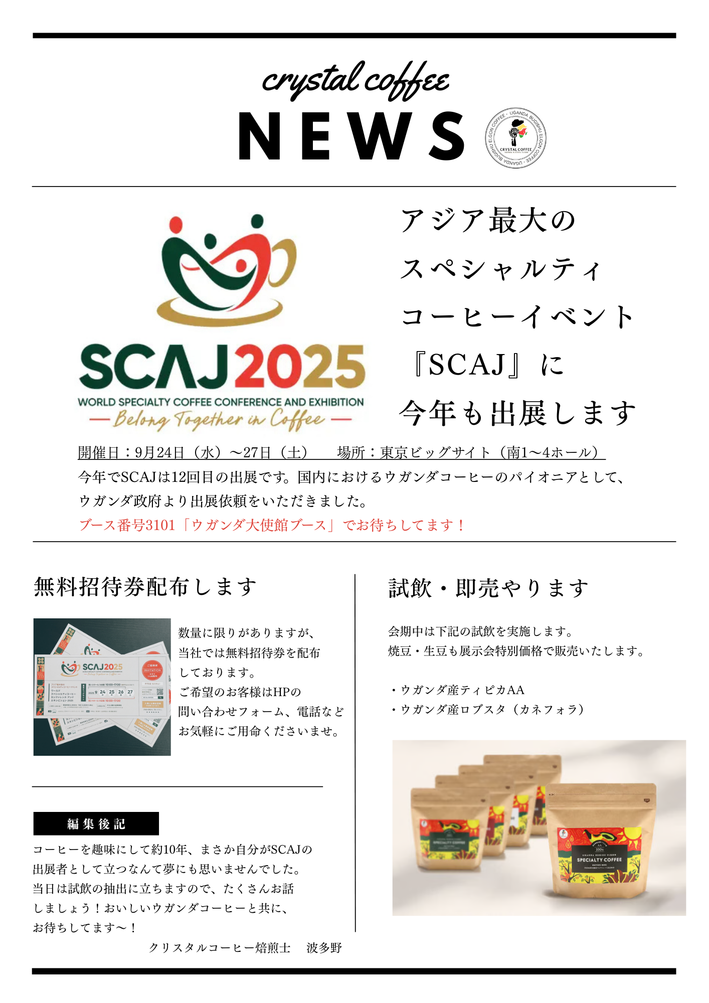 無農薬・無施肥のオーガニックなウガンダ産スペシャルティコーヒー、SCAJ2025に出展します